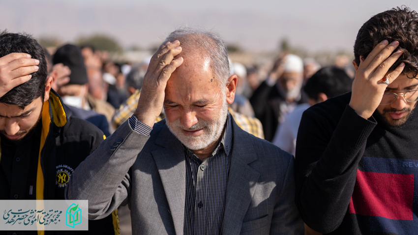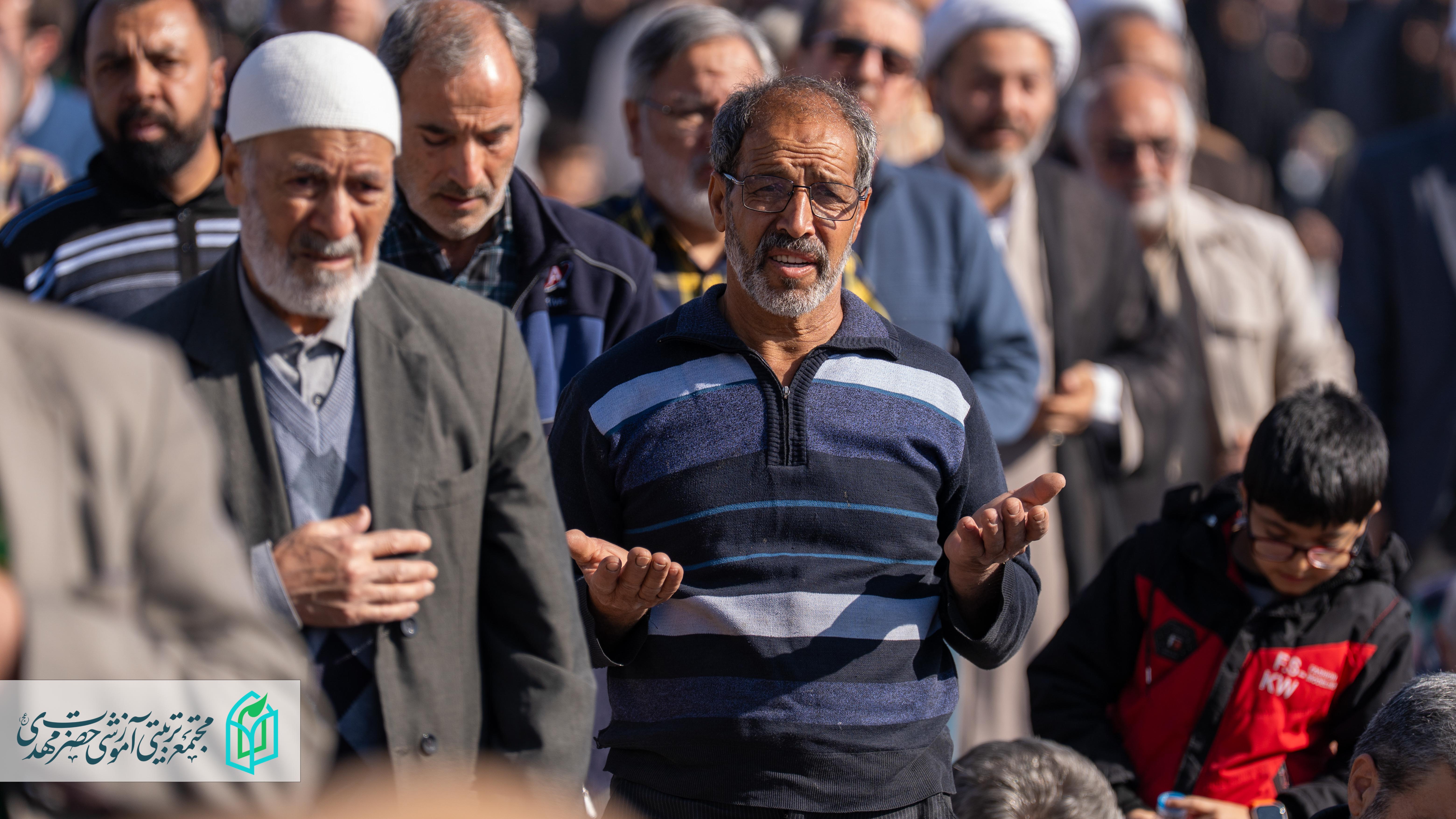 صدای تضرع، بغضهای مداوم، اشکهایی که بیاختیار بر گونهها جاری میشد و زمزمههای عاشقانه در میان جمع، حال و هوایی وصفناشدنی پدید آورده بود. هنگام توسل و روضه، صدای گریه و ناله در فضای باز محل نماز طنینانداز بود و زمین تشنه، گویی از اشک چشم مؤمنان سیراب میشد. پیران و کودکان، جوانان و سالخوردگان، علما و کاسبان، معلمان و طلاب، همگی در کنار یکدیگر صف بسته بودند؛ دستها به آسمان بلند و چشمها غرق اشک، از درگاه خداوند طلب رحمت میکردند.