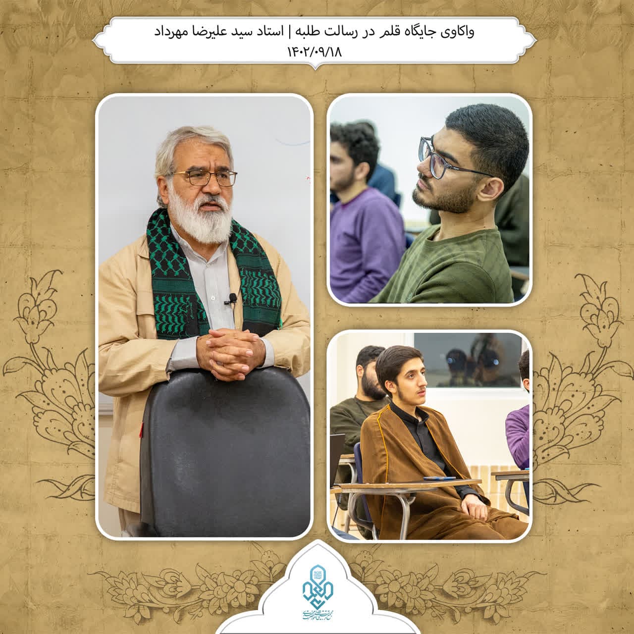 به گزارش روابط عمومی مجتمع حضرت مهدی (عج)، واکاوی جایگاه قلم در رسالت طلبه با حضور استاد سید علیرضا مهرداد برگزار شد.