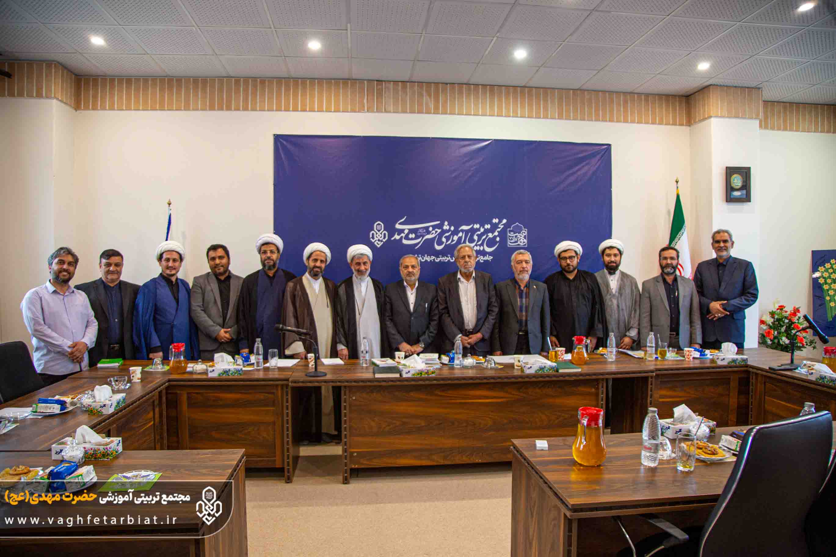 حجتالاسلام والمسلمین استاد محمدجواد نظافت، ریاست مجتمع تربیتی آموزشی حضرت مهدی (عج) در این دیدار به معرفی پروژه جامعترین پردیس تربیتی جهان تشیع پرداخت و با ارائه توضیحاتی به دستاوردها و مأموریتهای پیشروی مدارس نسل آفتاب اشاره کرد و بر اهمیت این تلاشها در دستیابی به اهداف بلندمدت تصریح نمود.